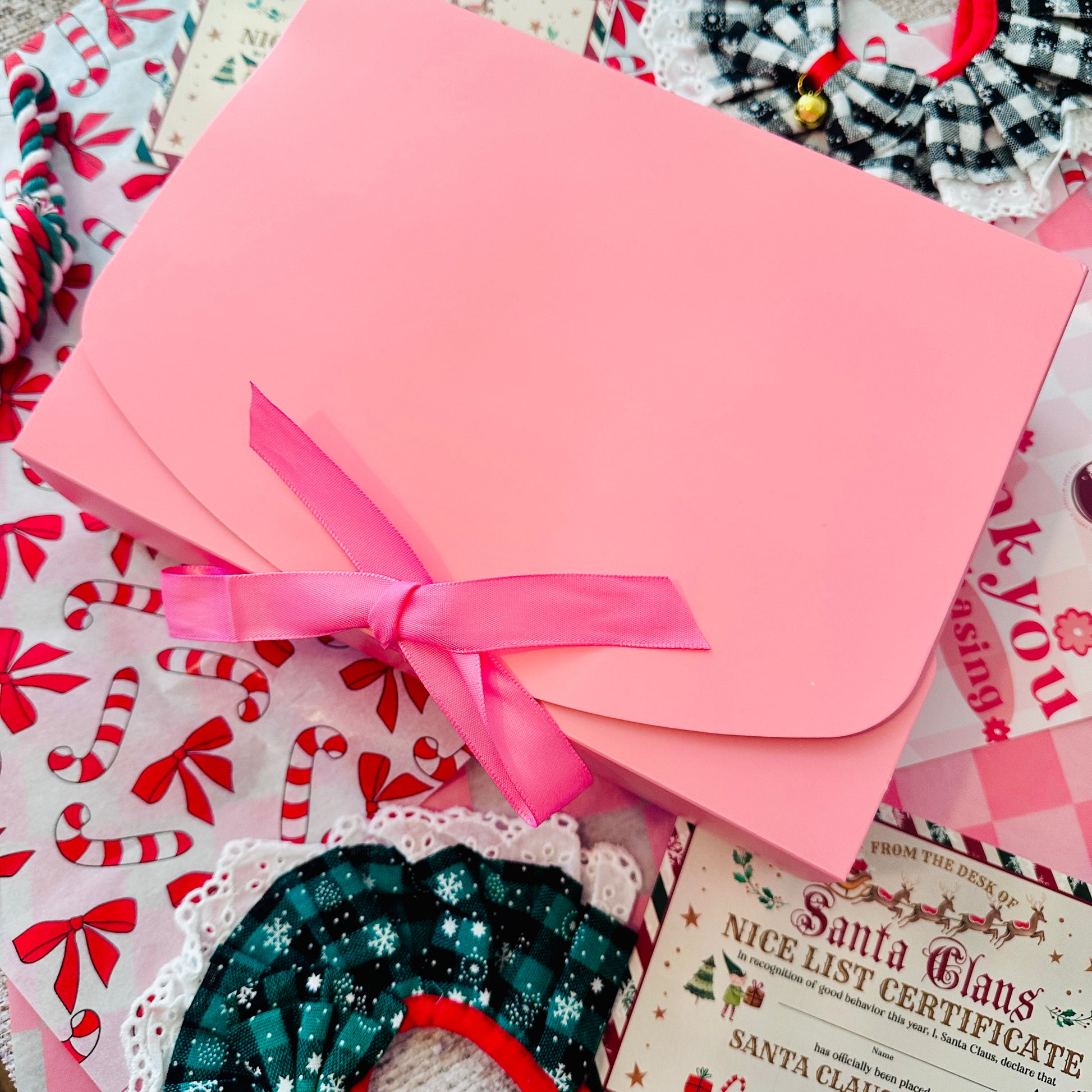 Please note the Christmas themed adjustable bow collar and the festive frilly collar come in assorted designs and will picked randomly for your Pawliday Parcel. If you do have a preference, please leave us a note at checkout and we will do our best to accommodate your choice.